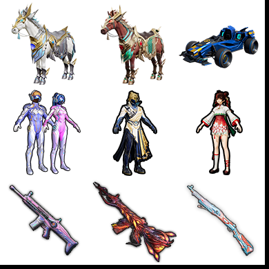 6载具/6特效枪/12粉/双马/关公/蓝螳螂/粉螳螂/路特斯/玛莎/98k创世救赎/5级风花雪月/梦幻火箭/呆萌星...