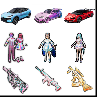 红装 精灵之光3级/洛天依/幻彩电音/Scar锦绣5级/GROZA精灵3级/MG3突变脉冲7级/仰望u9。